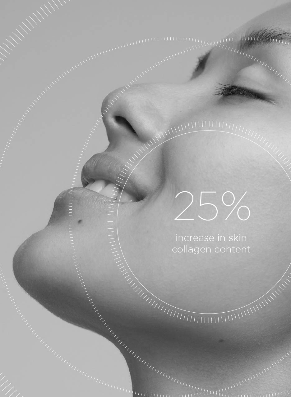 Collagen, a crucial protein that provides support and functionality to our skin BUT begins to decline at an average rate of 6% per year after the age of 25. In our younger years, we produce ample collagen to keep our faces firm, elastic and fresh. When we age, we naturally lose collagen in our face and body, and produce less of it, resulting in fine lines, sagging, dullness and dryness.